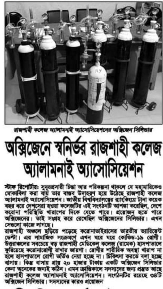 করোনাকালীন সময়ে বিভিন্ন ব্যাচ হতে অক্সিজেন সিলিন্ডারসহ বিভিন্ন করোনা কিট সংগ্রহ ও বিতরণ